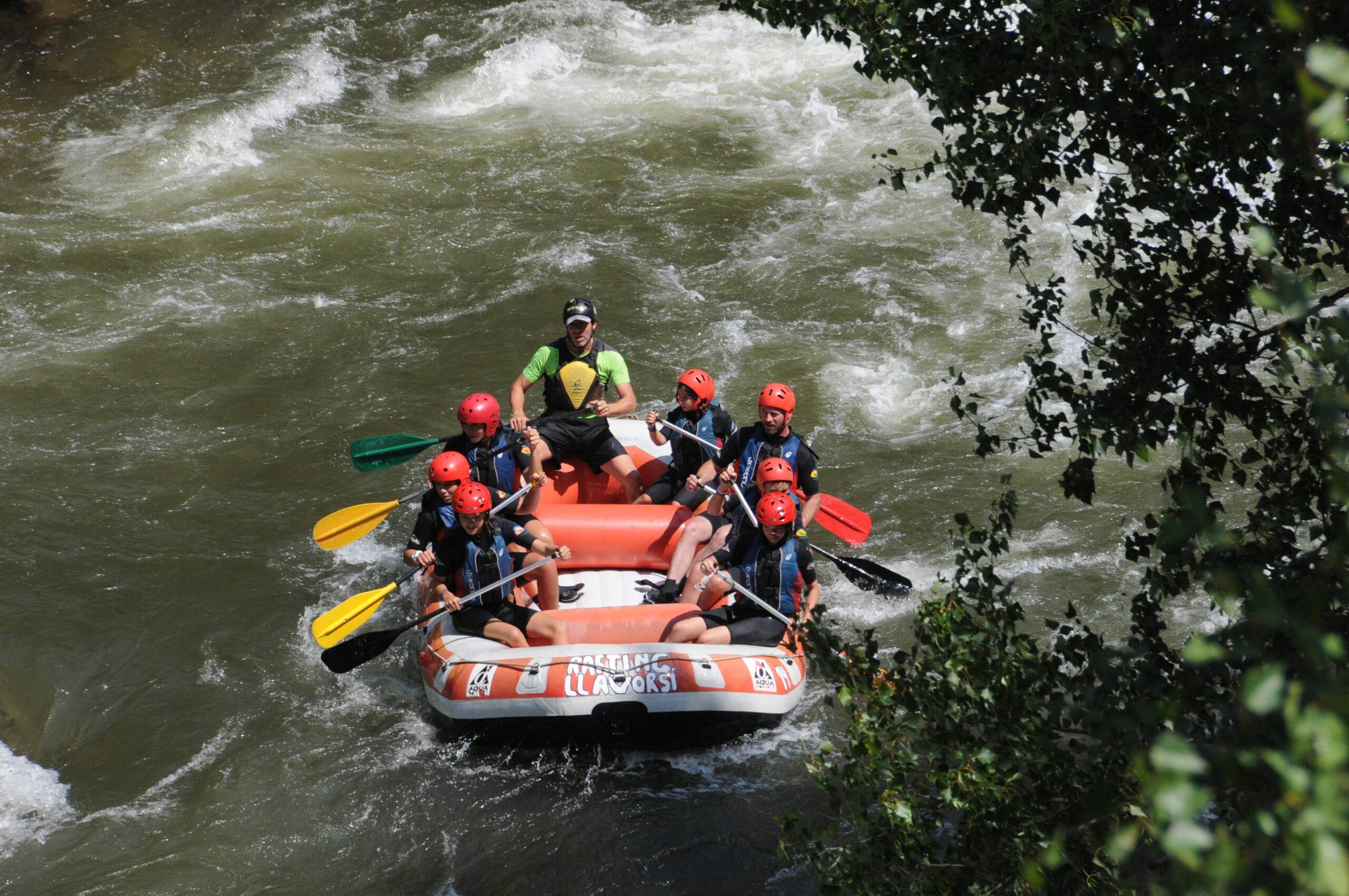 El ràfting consisteix en el descens d’aigües braves en bots pneumàtics pel riu Noguera Pallaresa, sempre acompanyats d’un guia titulat. A cada embarcació hi poden anar entre sis i vuit persones.