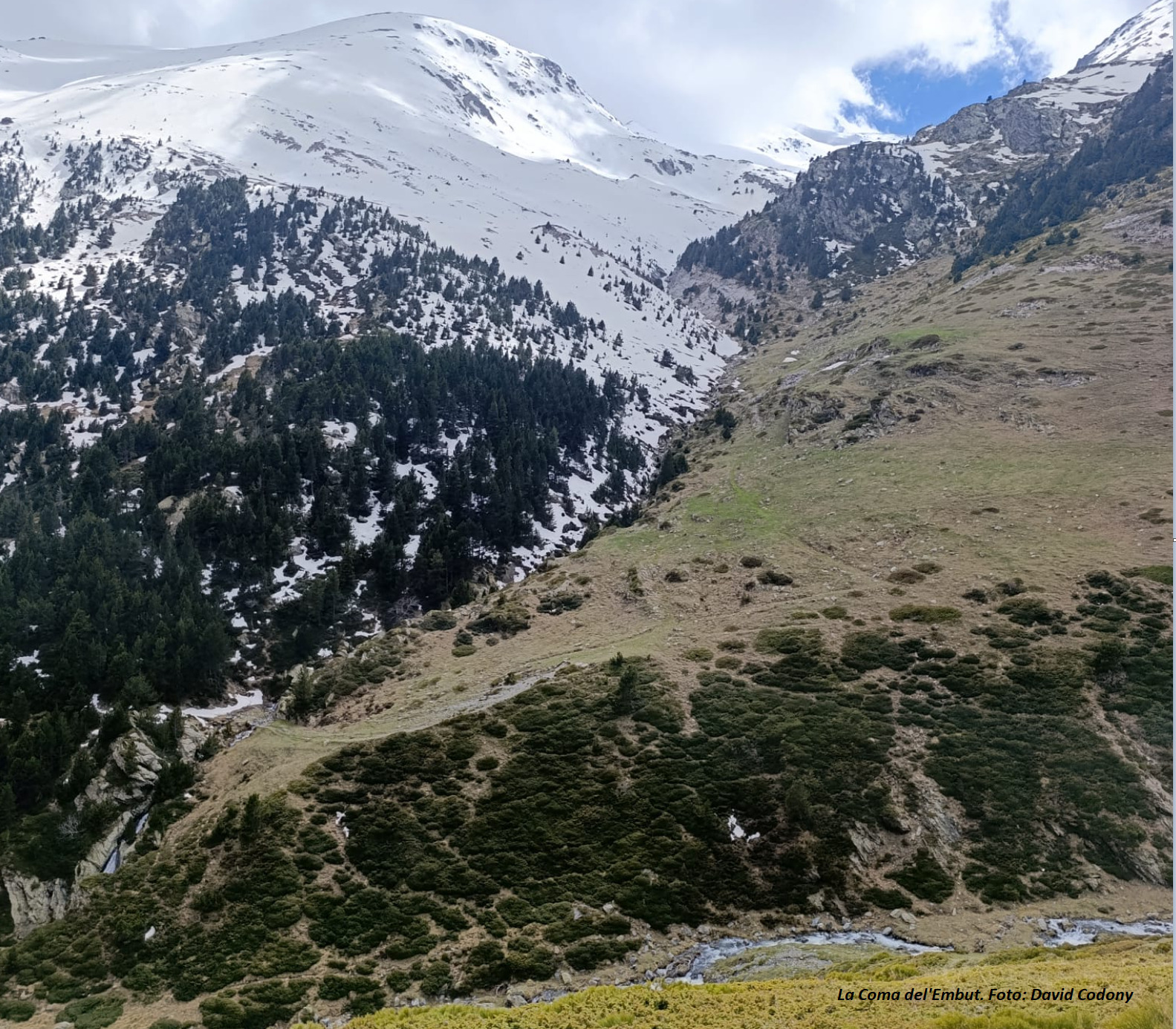 El camí dels enginyers que ens porta a Coma de Vaca ja el trobem net de neu, pel fet d’anar per la cota 2.000, les darreres pluges han fos molta de la neu que hi havia. Només unes petites congestes en els torrents ens faran estar al cas. No oblidem, que mentre hi hagi neu en les cotes superiors correm el risc de que una allau afecti al camí sobretot en dies de calor i al migdia.