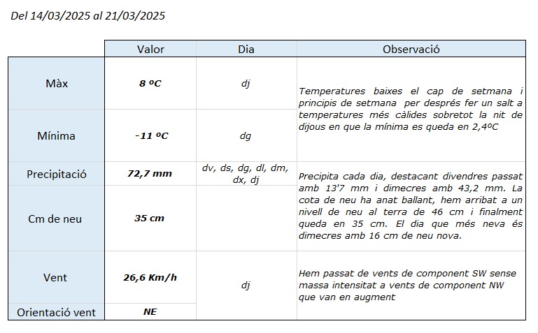 - Info meteo específica de muntanya: https://meteomuntanya.cat/