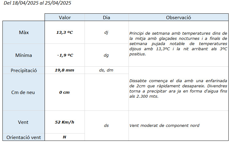 - Info meteo específica de muntanya: https://meteomuntanya.cat/