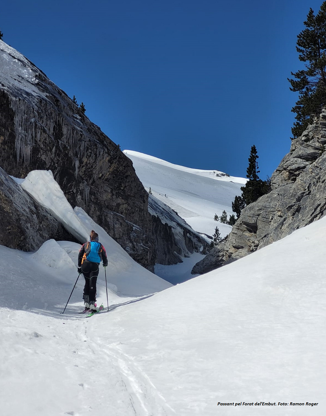 Per sectors, la zona que es troba en unes condicions fantàstiques és la Coma de l’Embut, poden fer el Puigmal en bones condicions o la cara W del Pic de Segre. Haurem de caminar des de Núria uns 20 min fins a arribar a l’inici del Forat de l’Embut, després ja trobem neu contínua. La tendència serà que cada cop s’hagi de caminar una mica més per trobar la neu, i aquí és on cadascú valorarà quanta estona val la pena portejar el material per anar a buscar la neu. De moment amb les previsions de baixada de temperatures aquesta situació encara es pot allargar unes setmanes més.