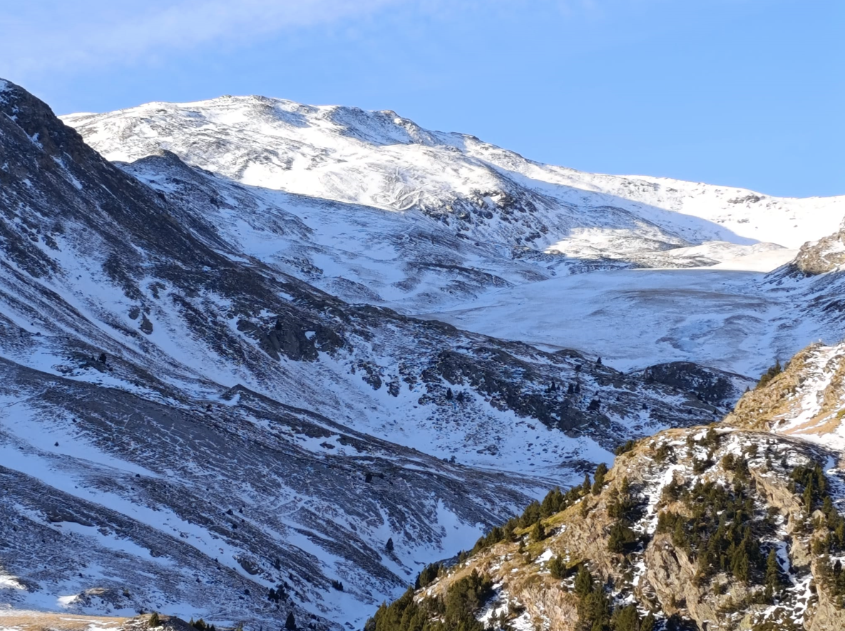 Als vessant sud ha marxat la fina capa que ho va vestir tot de blanc. De fet tornem a tenir congestes inconnexes que no donen continuïtat. En canvi als vessants nord, com la coma de l’Embut, han mantingut aquesta fina capa de neu. Encara no és esquiable però de ben segur que demà dissabte ja serà possible d’anar-hi amb esquís. En els fons de torrent com el del Noucreus, s’hi ha anat amb esquís però molt limitat.