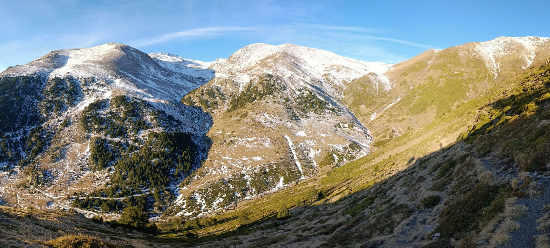Panoràmica dels cims de l’Ortigar, Puigmal, Segre i Finestrelles