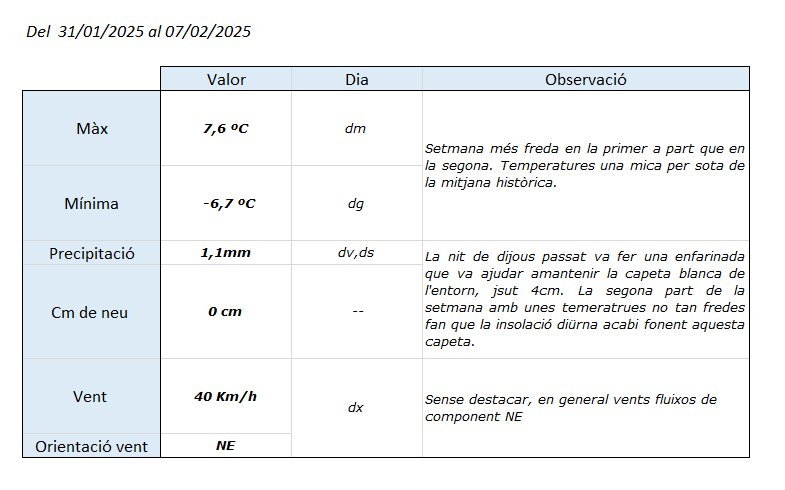 - Info meteo específica de muntanya: https://meteomuntanya.cat/
