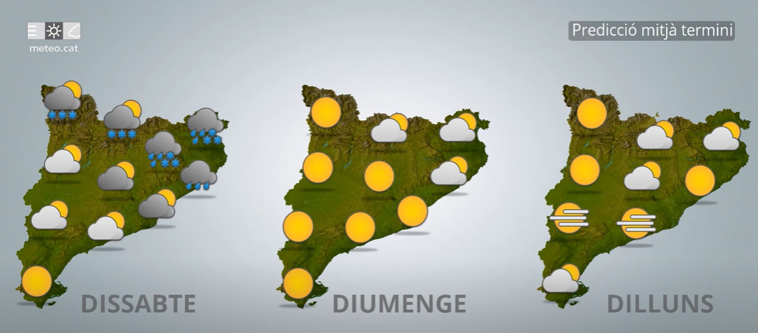 Dissabte tindrem nevades des dels cims del Pirineu fins als fons de les valls. Diumenge un dia assolellat per gaudir del paisatge.