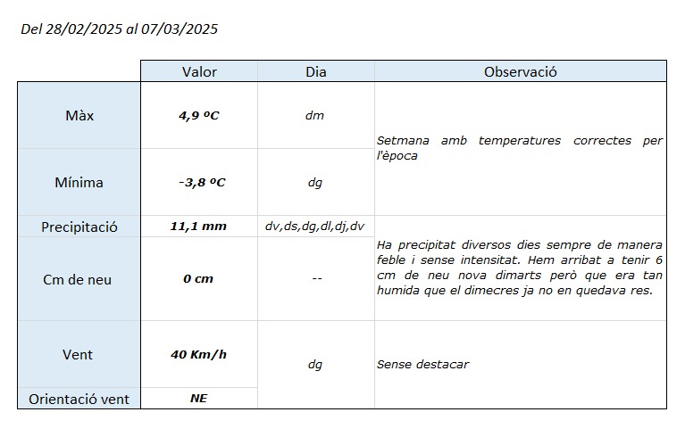 - Info meteo específica de muntanya: https://meteomuntanya.cat/
