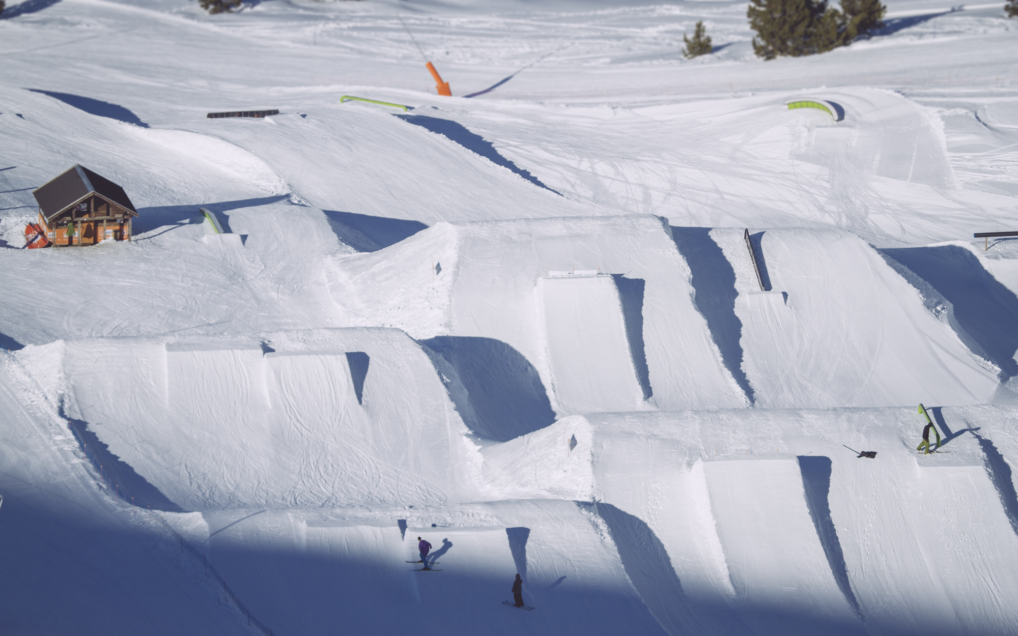 I com és manté aquest Snowpark? L’Snowpark disposa de 8 canons de neu artificial. Una vegada creada la neu, els shappers del Park han de treballar prèviament els diferents mòduls amb les màquines trepitjaneus, Park Bully 600. Gràcies a les feines realitzades en la confecció de la estructura bàsica dels mòduls a l’estiu amb moviment de terres, l’estalvi d’hores de màquina és considerable. Després els shappers han de retallar manualment els “kickers” i els mòduls per donar l’angle idoni de sortida i donar una seguretat òptima als riders.