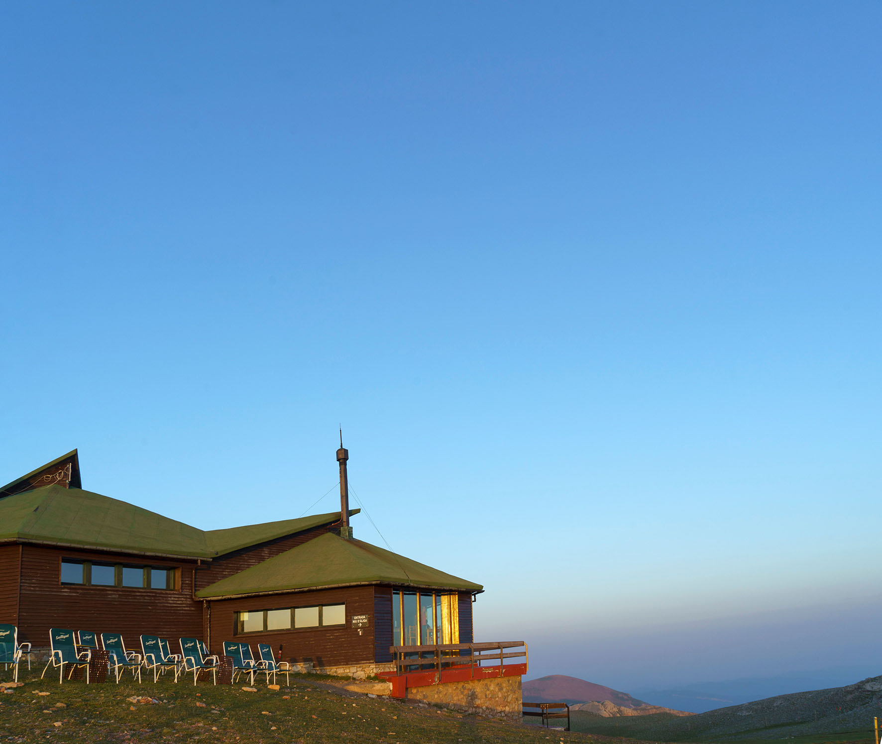 Imatge del Refugi Niu de l’Àliga al capvespre