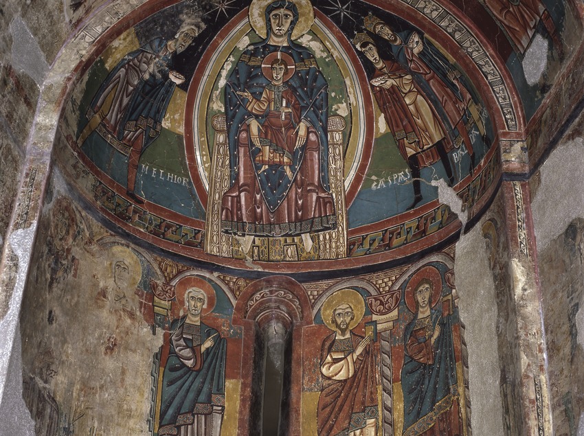 – L’església de Sant Climent, ubicada a la part més baixa del poble, destaca per la seva torre campanar de sis pisos i pel conjunt de pintures murals que s’hi poden veure, tot i que la més important de totes, el Pantòcrator de l’absis central, es conserva al Museu Nacional d’Art de Catalunya (MNAC), a Barcelona;