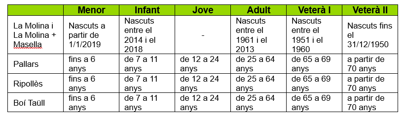 Franges d’edat forfet de temporada 25-26