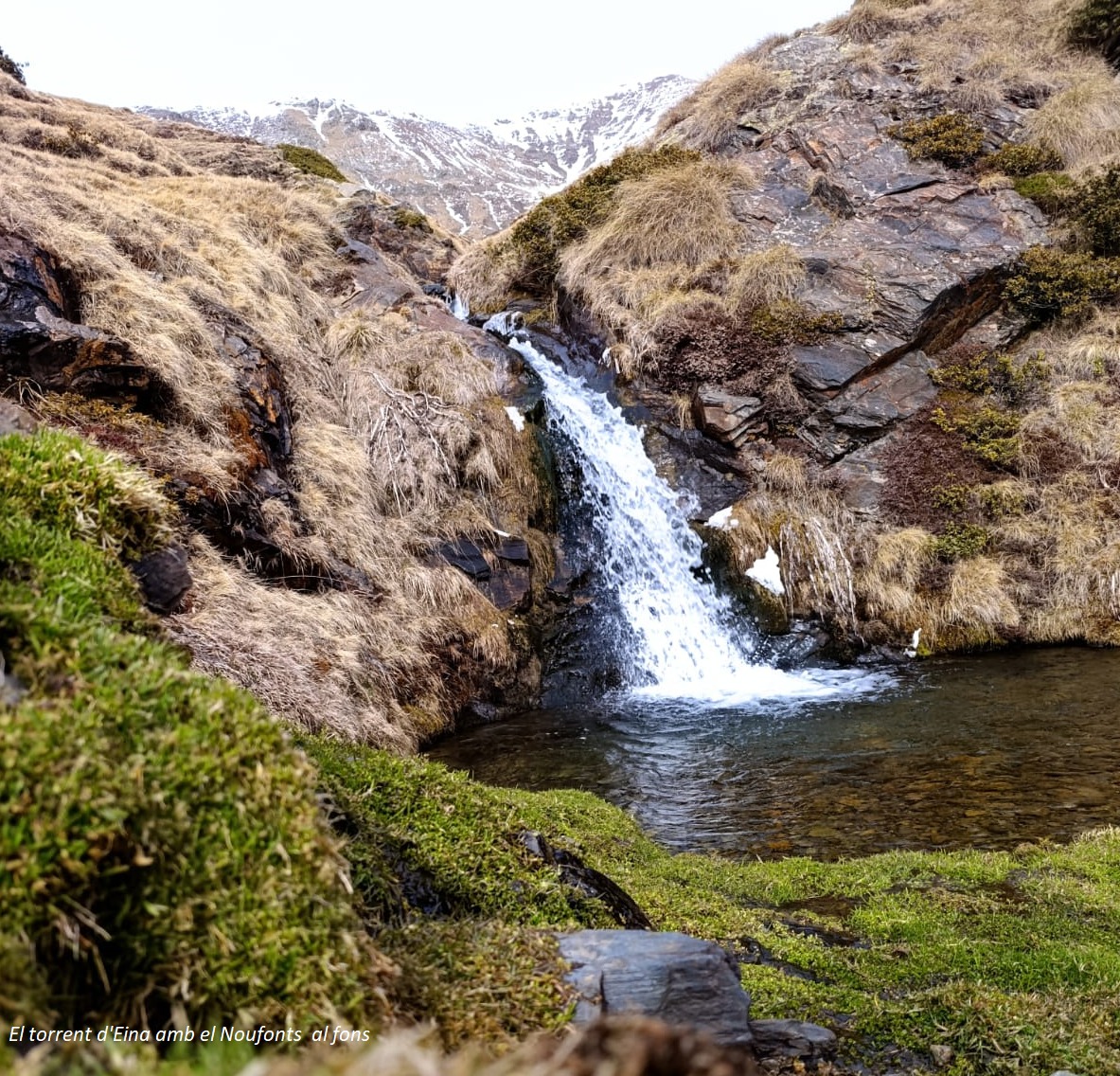El valle de Noucreus marca esta dualidad primaveral con una vertiente derecha del valle en condiciones invernales y la vertiente izquierda casi en seco. No encontraremos continuidad de nieve hasta el puente del Escudé. Con esquís o raquetas podremos realizar el fondo del torrente hasta la pala final que no está en condiciones. Esto nos dificultará el paso a la vertiente norte de Carançà que presenta mayor innivación.