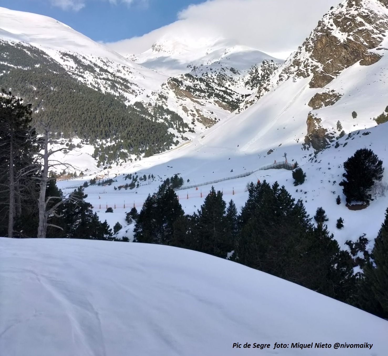El torrente de Noucreus en su parte baja mejorará gracias a la ventisca prevista que le dejará vende enterrado de nieve. Nos permitirá acceder a toda la vertiente Norte que está en unas condiciones inmejorables. Cuando tengamos la nieve mejor asentada es buen momento para aprovechar las vertientes que normalmente no se pueden hacer como la zona de Fontnegra.