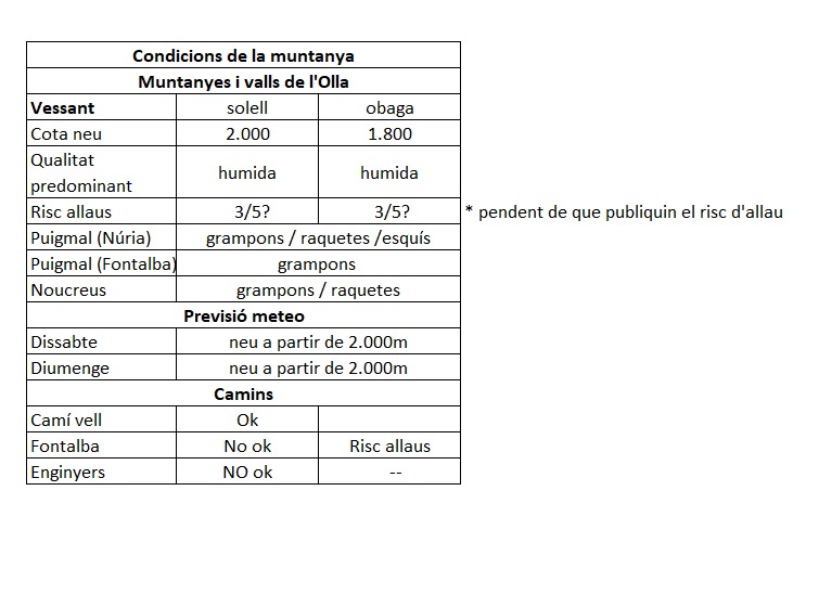 - Info meteo específica de montaña: https://meteomuntanya.cat/