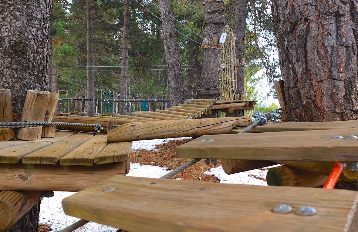 Si has seguido nuestros consejos y devuelto los esquís antes de comer para evitar colas, no puedes dejar de probar uno de los primeros parques de aventura en los árboles en España. Se trata de un circuito completamente seguro y adaptado para los niños a partir de 4 años.