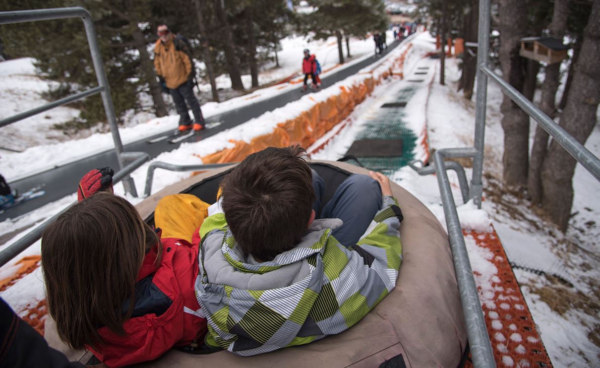 El resto bajamos con los niños en telecabina y esperamos en la zona lúdica donde puedes divertirte de lo lindo con uno de los más trepidantes tubbings de cataluña.A pie de pista, puedes acceder con un telesilla a varias pistas verdes ideales para aprender a esquiar. Son anchas y con poca pendiente, por lo que no encontrarás dificultad para entrenarte con los niños.